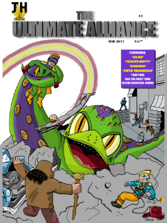Ever sit around with your friend and make stupid jokes that only you find funny but laugh yourself silly over? That’s pretty much what we’ve got today- except someone took the time and effort to draw it out as a comic. Love it or hate it- it’ll be an interesting ride. So strap in kiddies we are jumping into “The Ultimate Alliance” by JH Publishing.